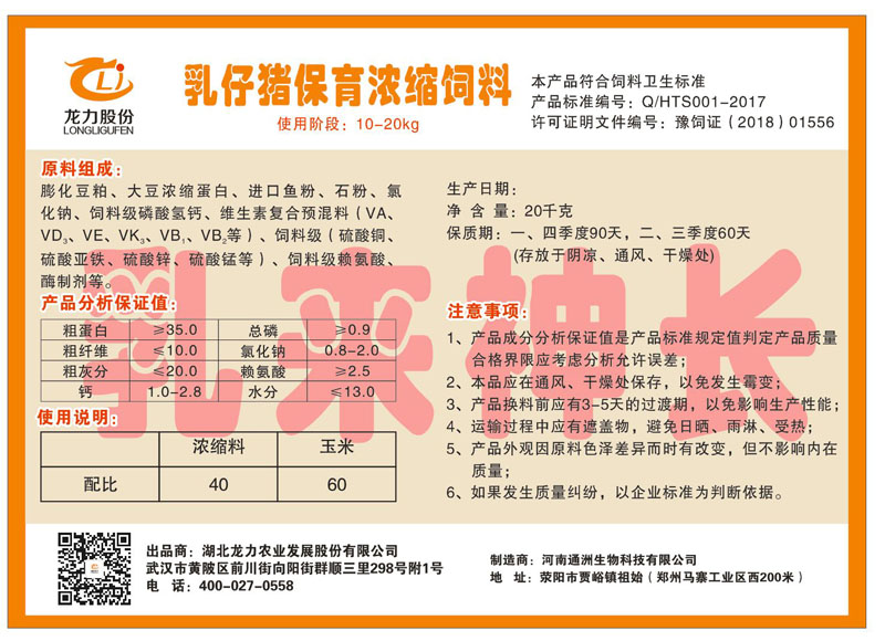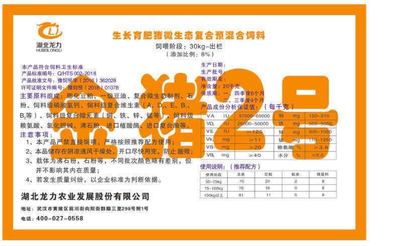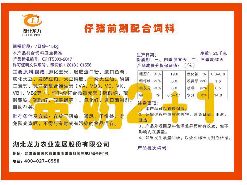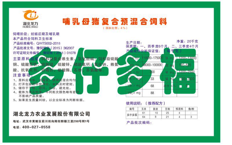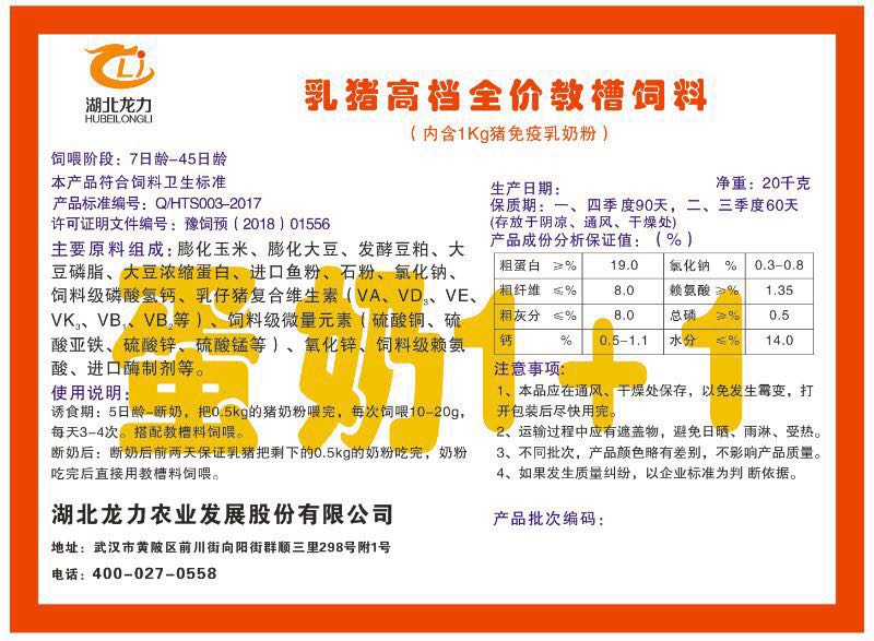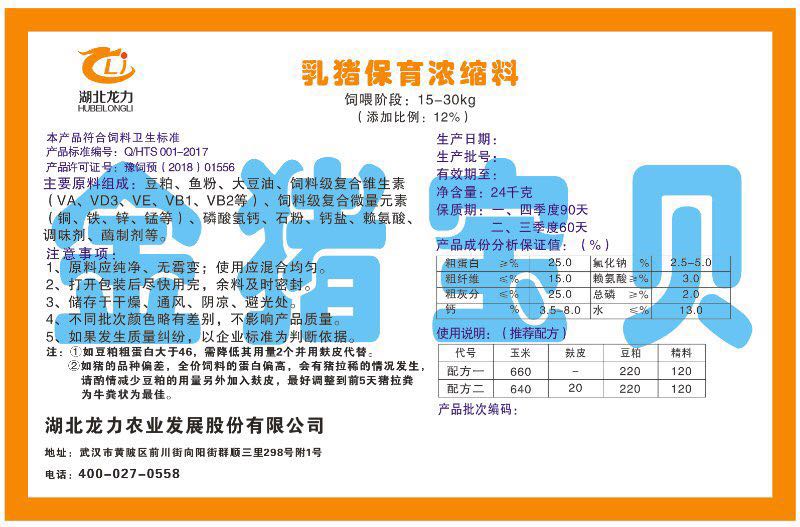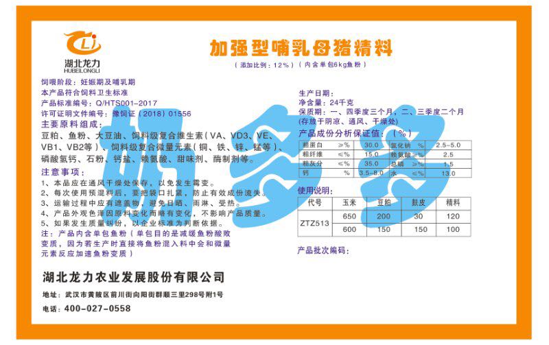 湖北龍力農(nóng)業(yè)發(fā)展股份有限公司坐落于武漢市黃陂區(qū)前川街向陽街群順三里298號附1號。公司成立于2014年6月,公司自成立以來把“創(chuàng)全球最大養(yǎng)豬綜合服務(wù)”為企業(yè)愿景。致力于打造教保料品牌”作為公司發(fā)展的明確目標(biāo)。公司一直致力于豬營養(yǎng)的研究和開發(fā),積極與國內(nèi)外高校和科研機構(gòu)合作,推廣養(yǎng)豬技術(shù)、動物營養(yǎng)新概念,向世界農(nóng)牧企業(yè)學(xué)習(xí)與合作。公司采用國內(nèi)先進的生產(chǎn)工藝,選擇高精度電子配料秤,高均勻度、無殘留混合機等先進設(shè)備....